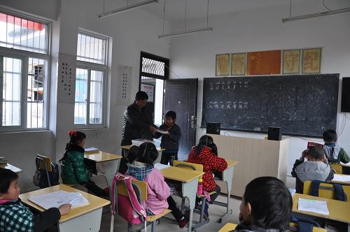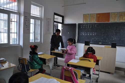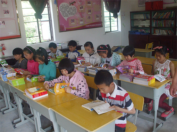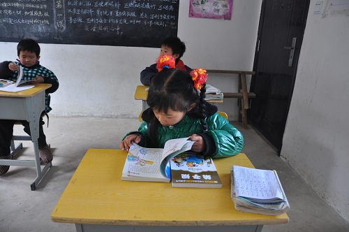 12月9日上午,阳光明媚,和平乡中纛小学的孩子们正在阅读《千字文》等文学书籍,这是远在合肥素未谋面的王惠阿姨送给他们的礼物。在三个月之前,在了解到中纛小学缺乏图书的消息之后,岳西团县委和合肥著名画家王惠女士取得了联系,王惠女士精心挑选了一批中国古典文学读物寄给这些山区的孩子。在这个料峭的寒冬,王惠女士用自己的爱心温暖了孩子们的心田,用知识满足了那一双双充满渴求的眼睛。