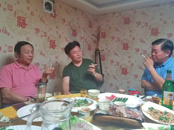 在晚宴上,张艳把宿州市美术家协会常务副主席、西安美术学院特聘教授、硕士生导师、著名画家耿震请来作陪。耿主席对担任过上一届省美协副主席的朱秀坤老师,自然是非常熟悉和尊敬的。朱秀坤会长介绍了安徽省诗书画研究会40年的发展历史,以及准备成立宿州分会的情况。耿主席表示非常欢迎和支持,并愉快地接受了傅琳会长提请他担任宿州分会艺术顾问的邀请。