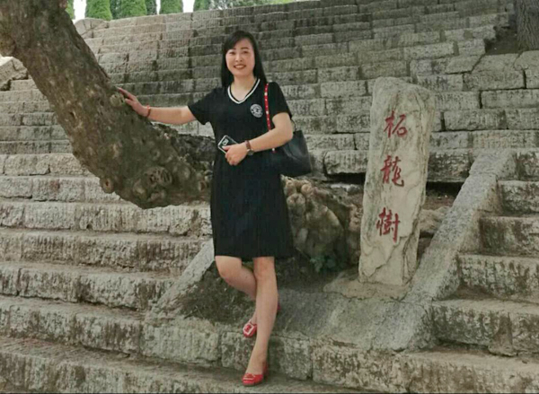 宿州分会副会长兼秘书长张艳在大泽乡文化园柘龙树下留影。